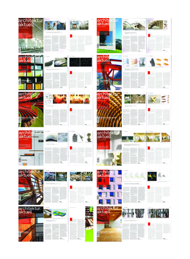 Since 2011 I am writing a regular columns in the bilingual architecture journal Architektur Aktuell. In more than 50 articles until present, I analyzed the nature of the digital vs the analogue, elaborating on examples of digital thinking in a pre-digital age, digitally executed projects with strong atmospheric qualities or projects developing strong concepts at the interface of the Analogue and Digital Production.